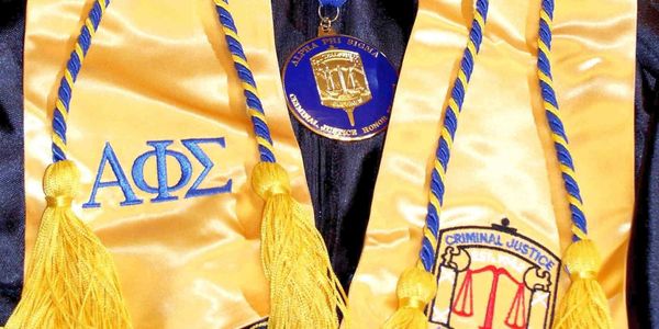 APS exclusive double sided 58" gold satin stole with Alpha Phi Sigma Key logo embroidered on left side, and Greek letters embroidered on right side.