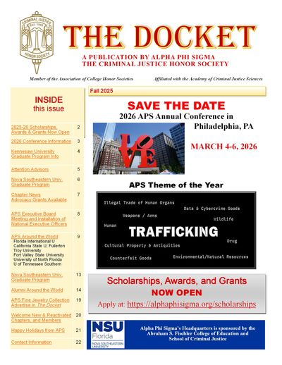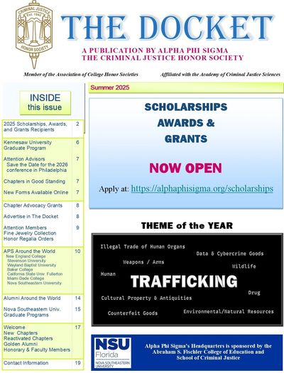 The Docket is the official newsletter of Alpha Phi Sigma, the Criminal Justice Honor Society.